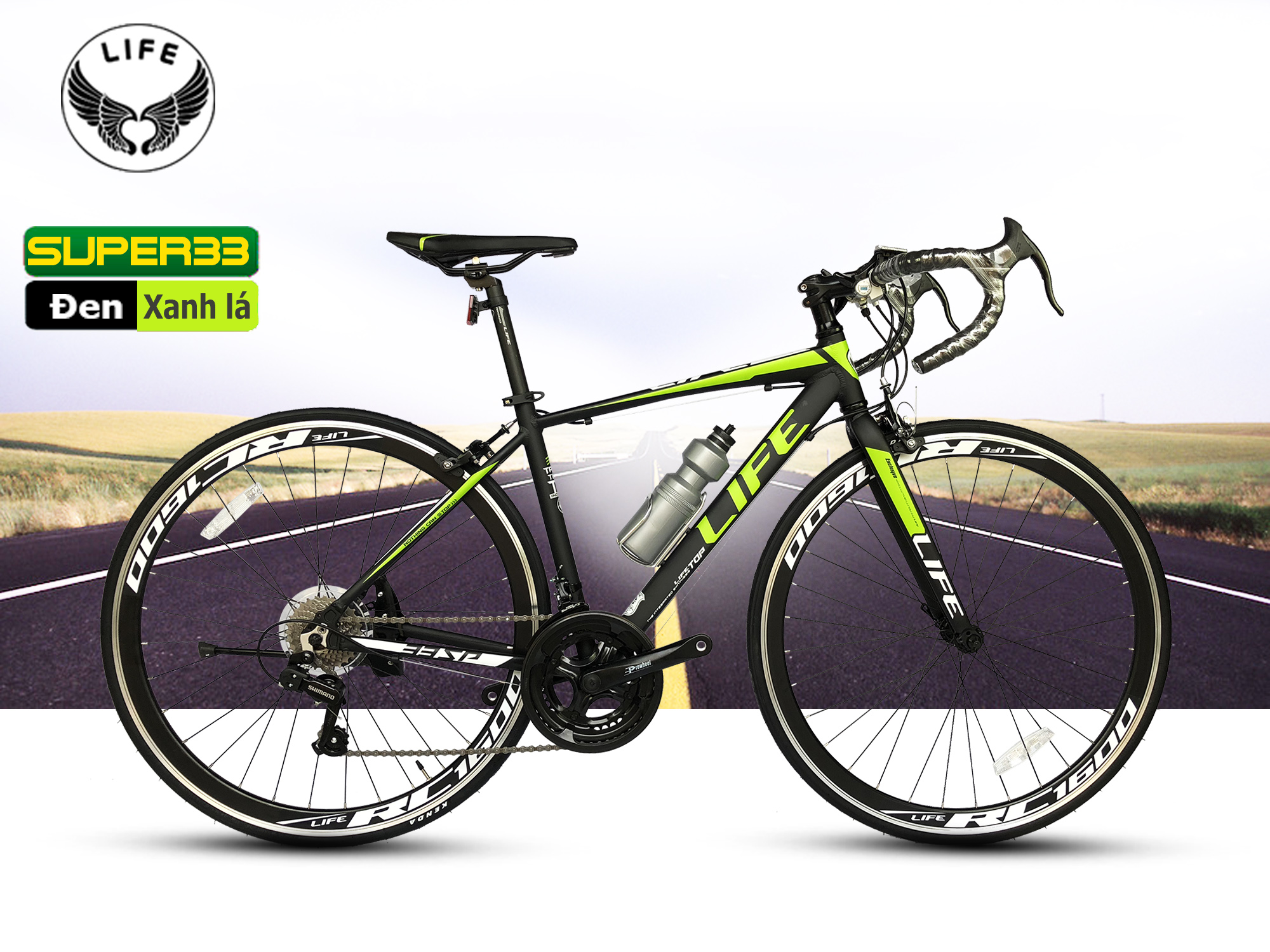 Xe đạp đua Life Super33 màu Đen/Xanh lá