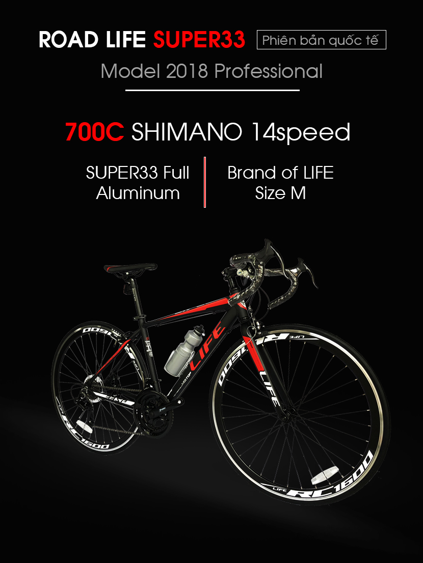 Xe đạp đua Life Super33 được hãng Xe đạp Life tung ra thị trường năm 2018. Thiết kế khung xe khí động học giảm tối đa lực cản gió được sản xuất trên dây truyền công nghệ Châu Âu mới nhất hiện nay đạt độ tối ưu nhất. Khung nhôm được xử lý bề mặt và được phủ lớp sơn tĩnh điện bền chắc. Super33 được trang bị bộ truyền động Shimano đầy mãnh lực với 14 tốc độ. Được các bác chơi xe đánh giá cao về chất lượng và giá phù hợp với túi tiền, dùng đề tập thể thao tăng cường sức khỏe.
